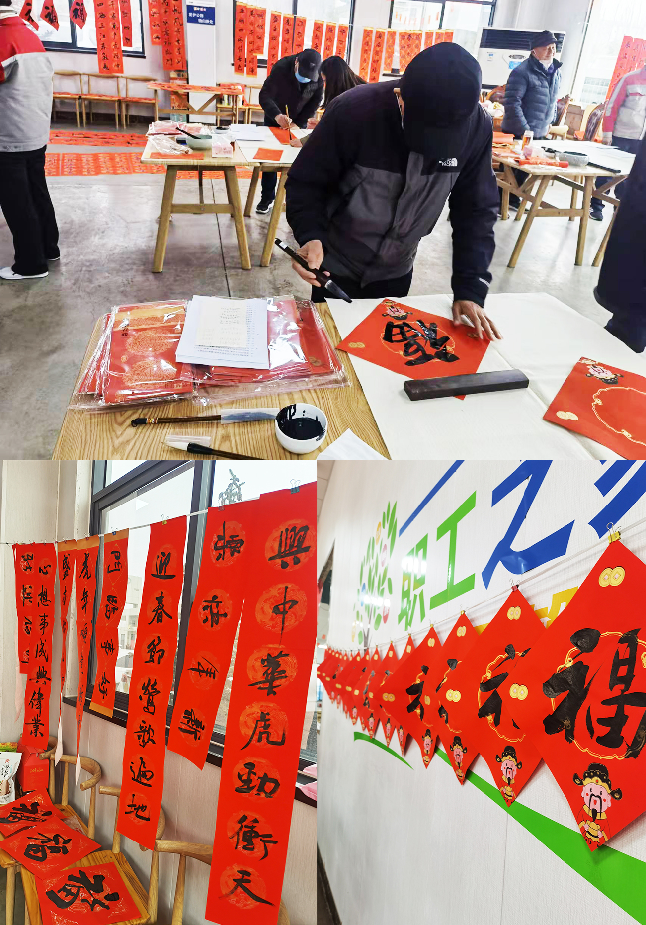 2022年1月12日上午10:00—11:30我公司在食堂大廳舉行“天意、天元星迎新春送春聯(lián)活動”,區(qū)文聯(lián)主席及市、區(qū)文聯(lián)書法家蒞臨我公司現(xiàn)場手寫春聯(lián)并贈送員工,活動現(xiàn)場氣氛熱烈,書法家們將新年的祝福寫進了一幅幅春聯(lián)和福字之中,書法家們的作品也受到了在場員工的連連稱贊!紅色喜慶的一幅幅春聯(lián)寓意著新的一年,紅紅火火!